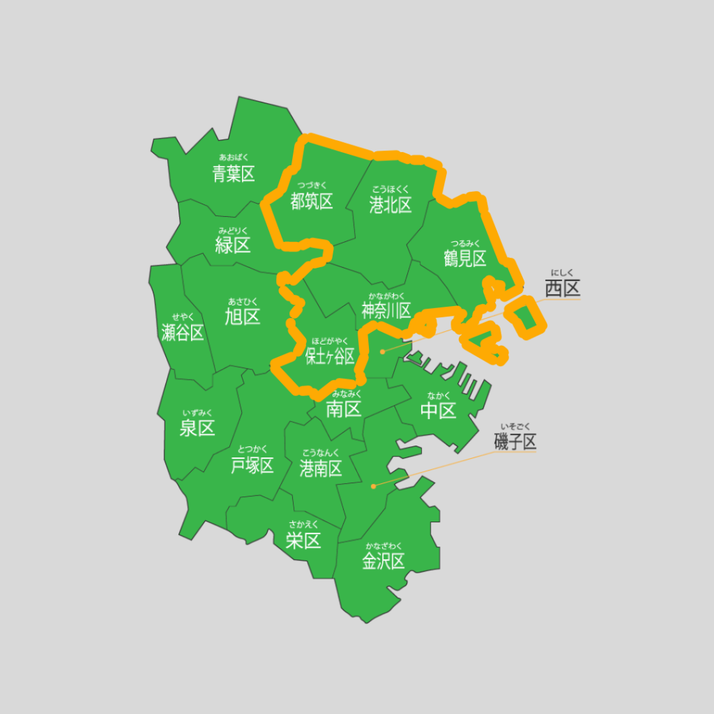 (神奈川区、港北区、都筑区、鶴見区、保土ヶ谷区など)