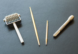 短く細い鍼を使います。鍼の当たりが柔らかく主にお顔に使います。刺激に敏感な方でも優しく治療できます。