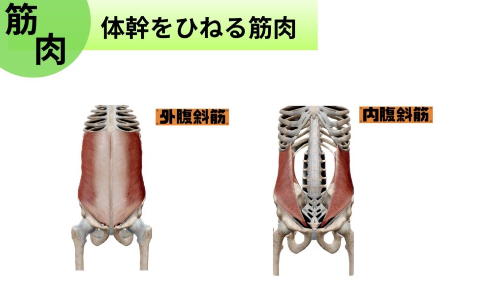 最後に身体をひねる動作についても以下の筋肉が動いています。